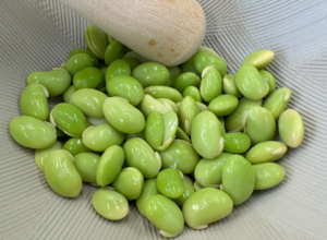 まずは、枝豆の皮をむいて、